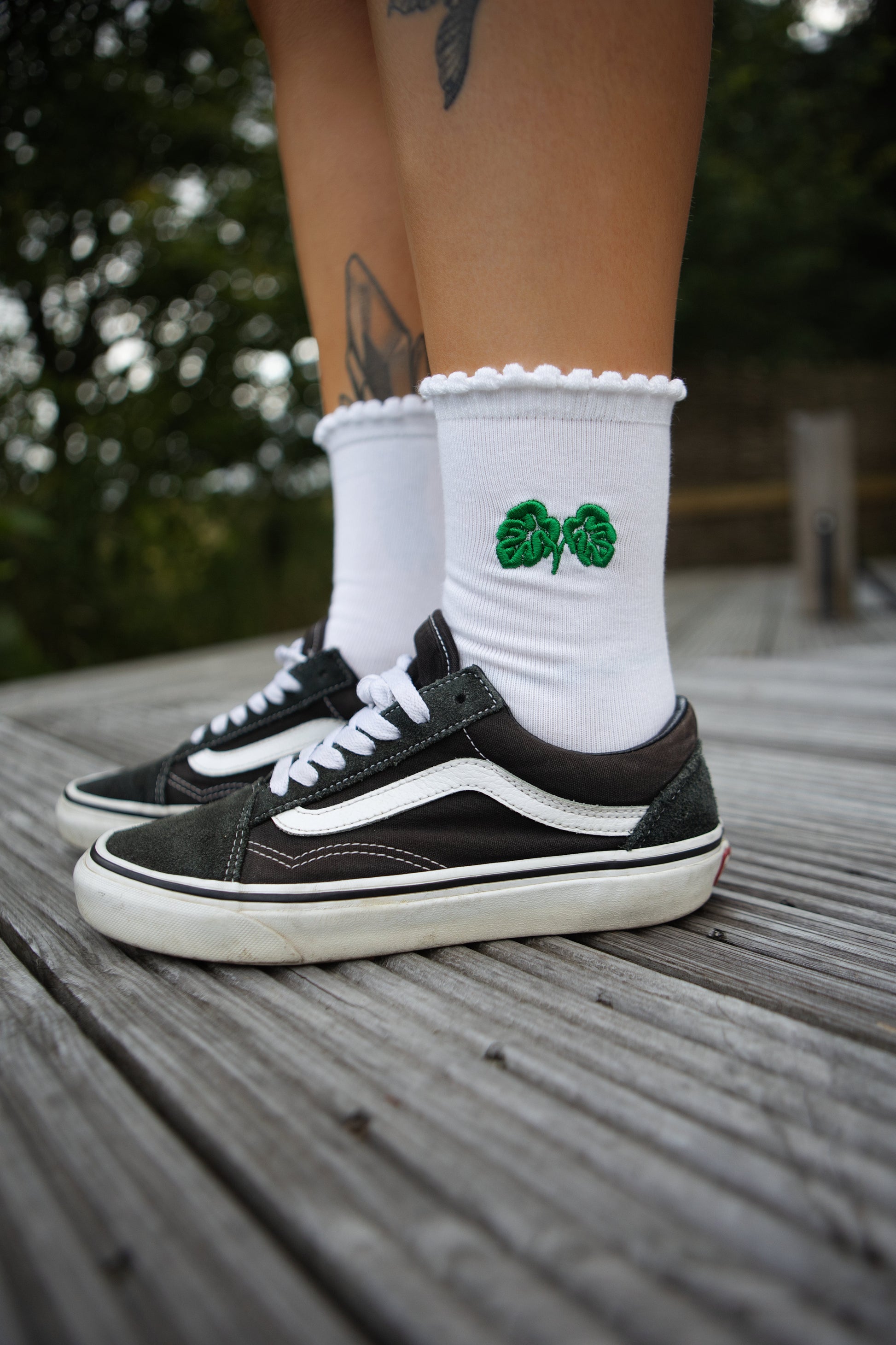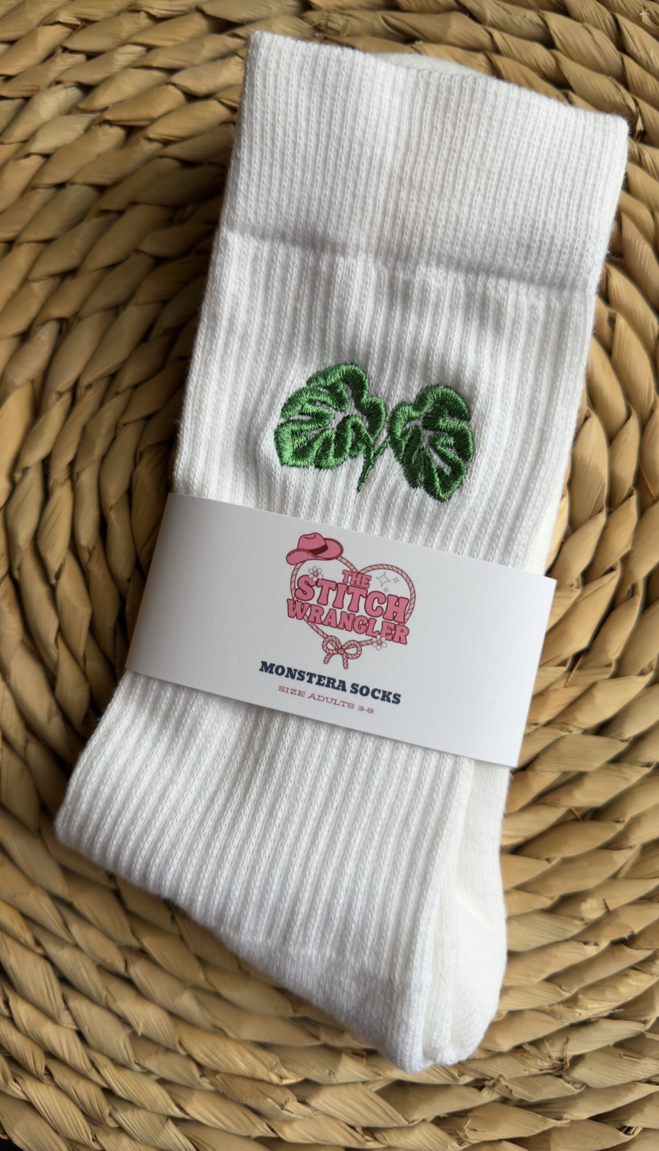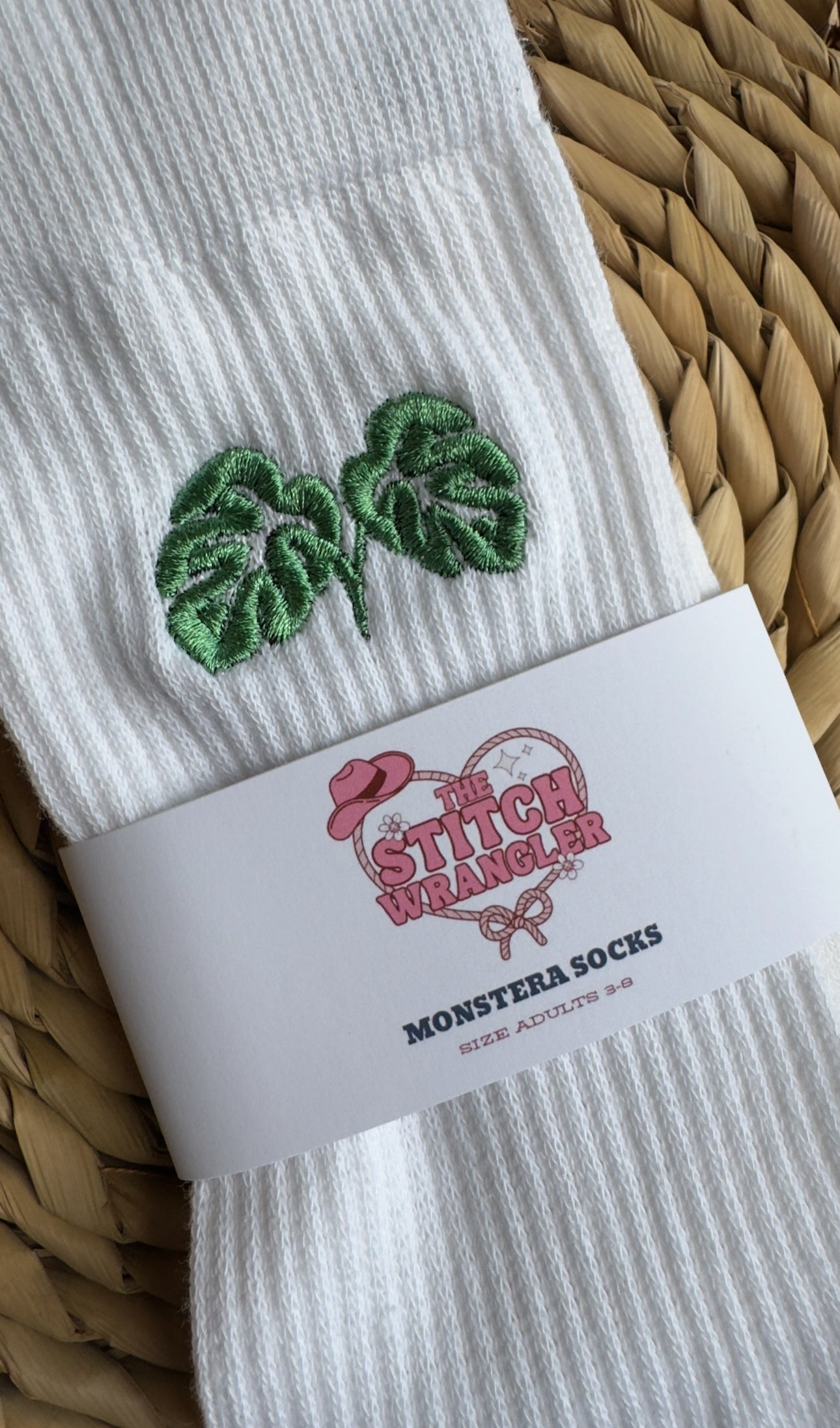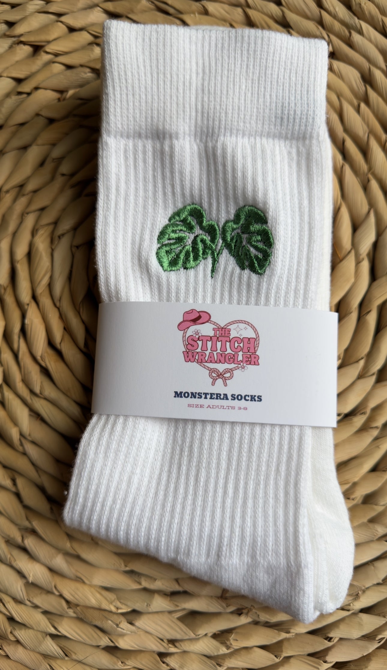 Add a little leafy flair to your step with our embroidered Monstera Socks – stitched with love, one iconic leaf at a time.