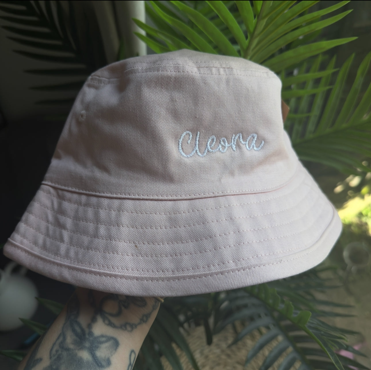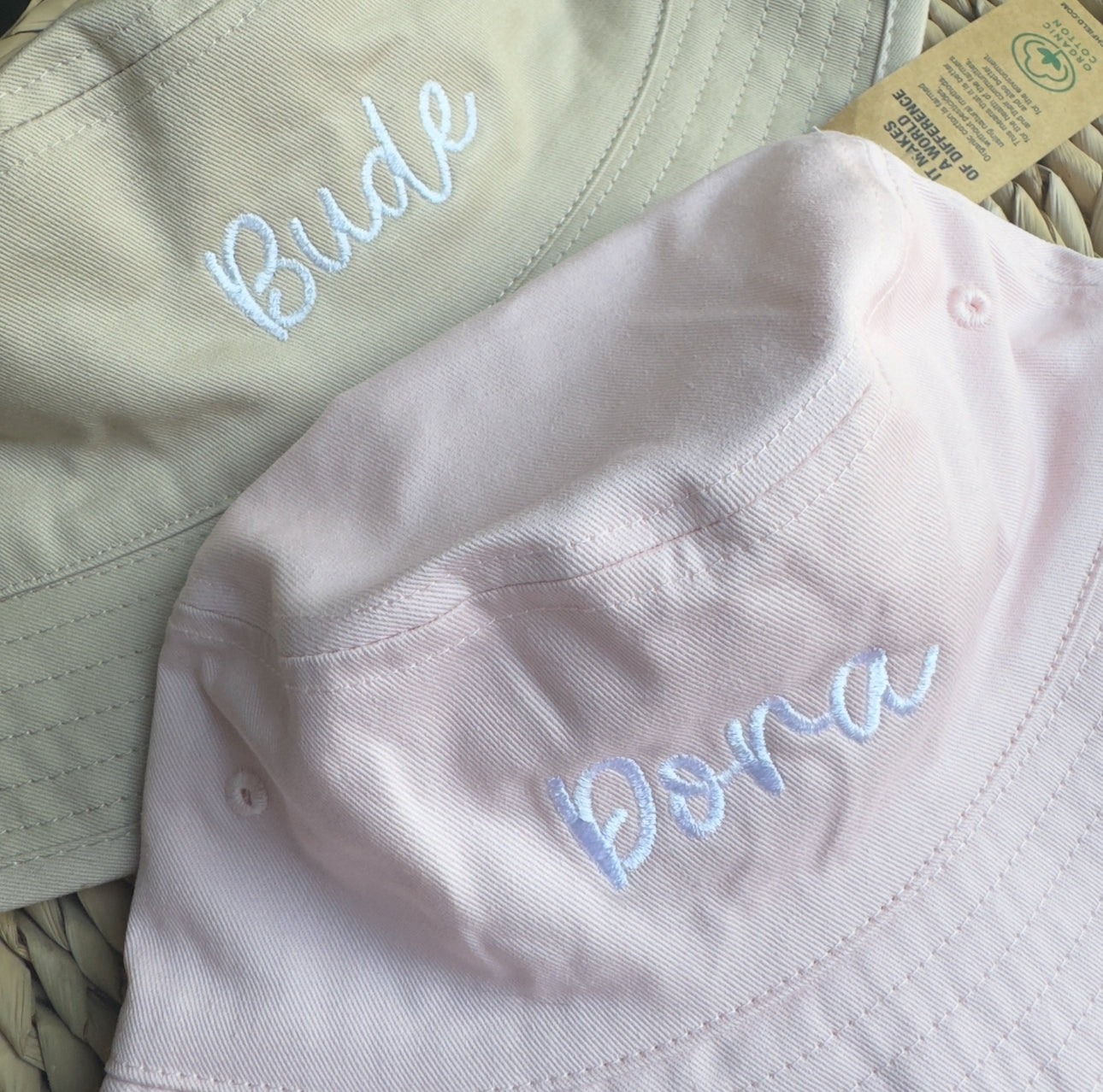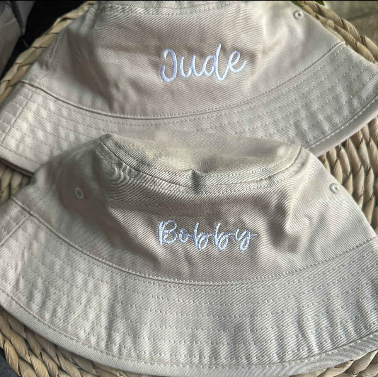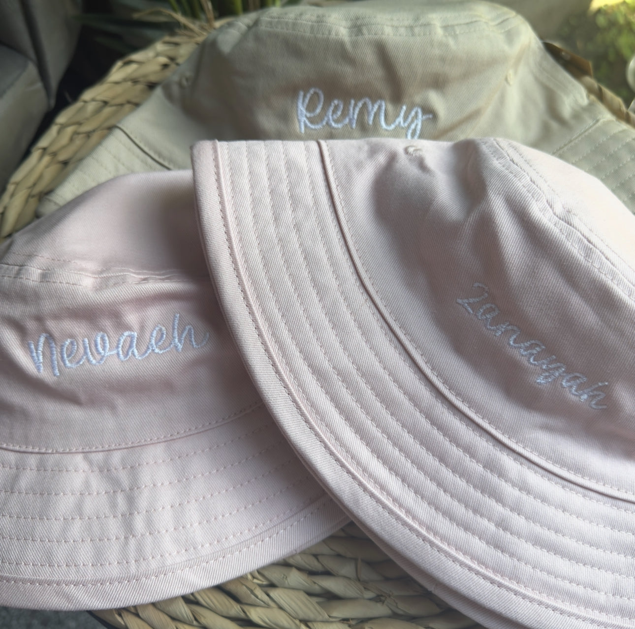 Keep your little ones cool, stylish, and sun-safe with our customisable kids’ bucket hats, made from 100% organic cotton twill for breathable comfort. Each hat is personalised with your child’s name for that extra special touch — perfect for holidays, beach days, or everyday adventures.
