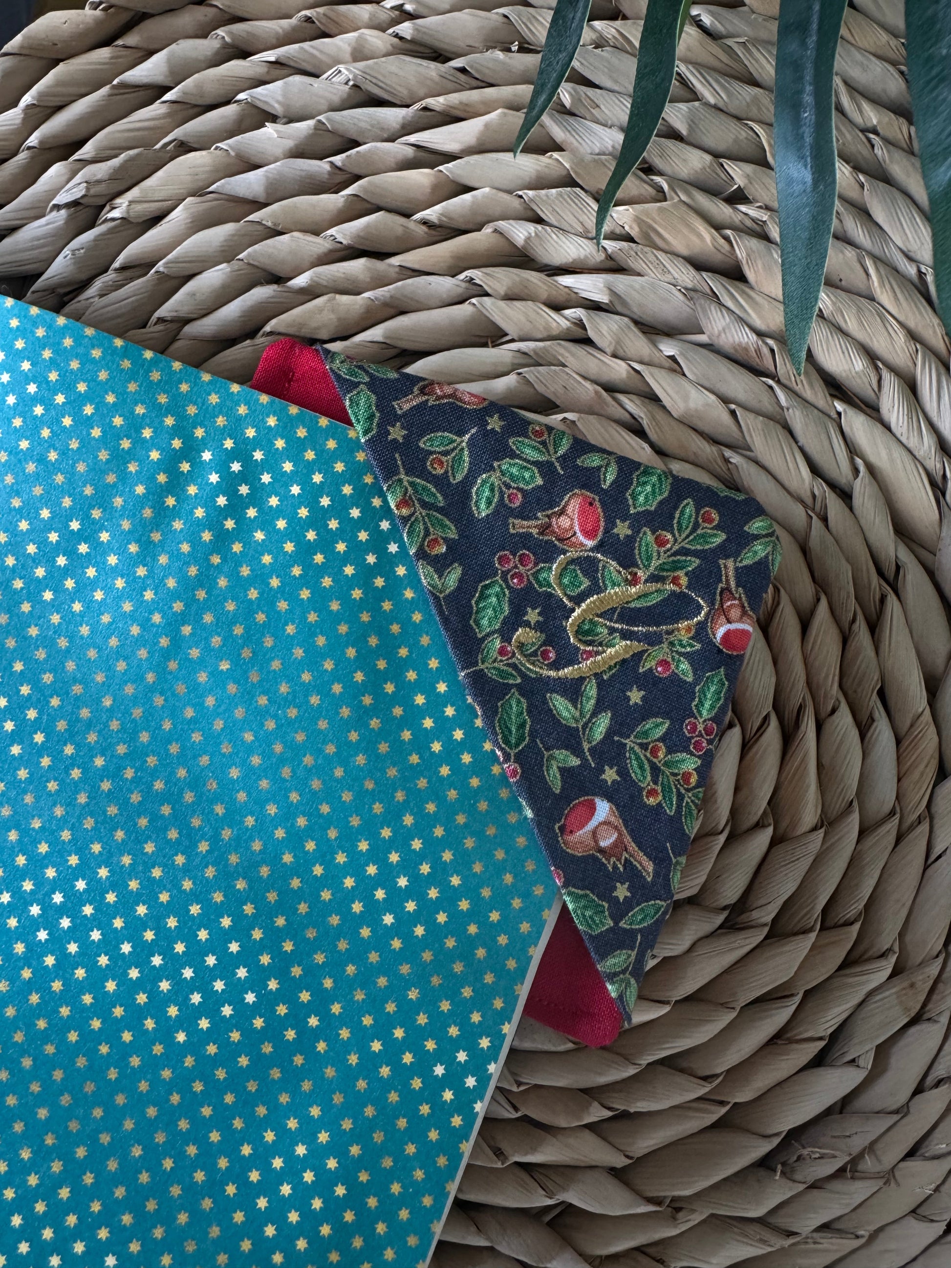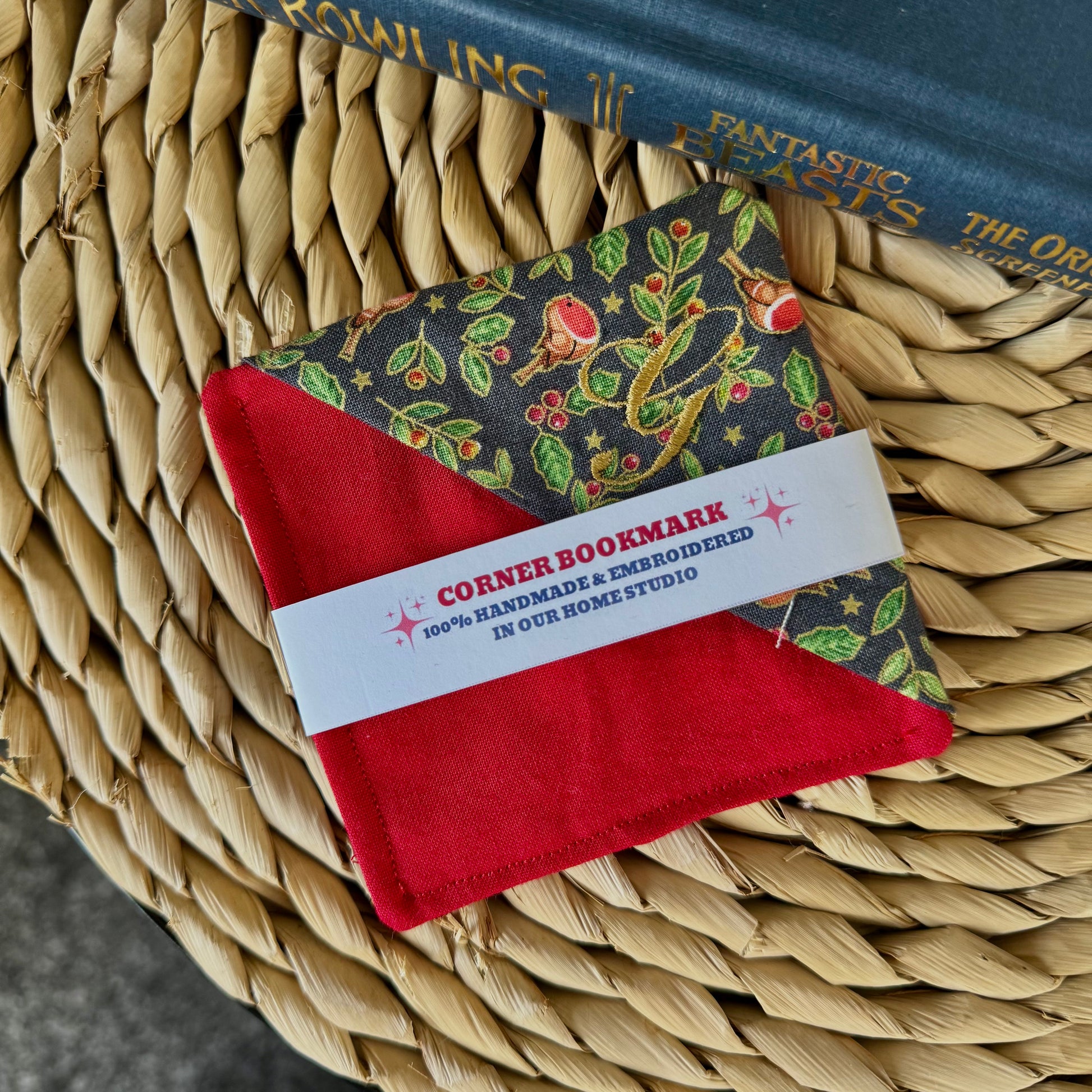 Bring a little festive cheer to your reading with this handmade fabric corner bookmark. Featuring a classic robin-and-berry print paired with a vibrant red backing, it’s a cosy nod to Christmas and the perfect gift for book lovers.