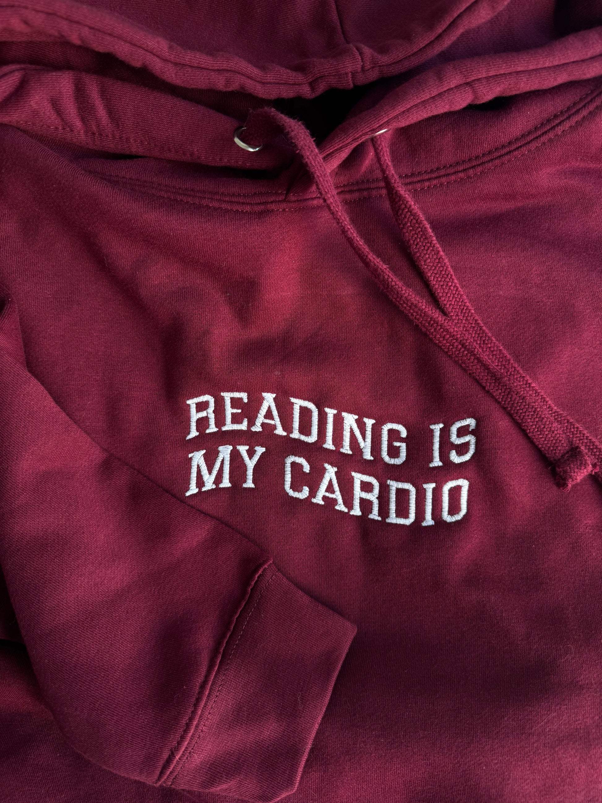 👕 Embroidery/Print: “Reading Is My Cardio” (front chest)