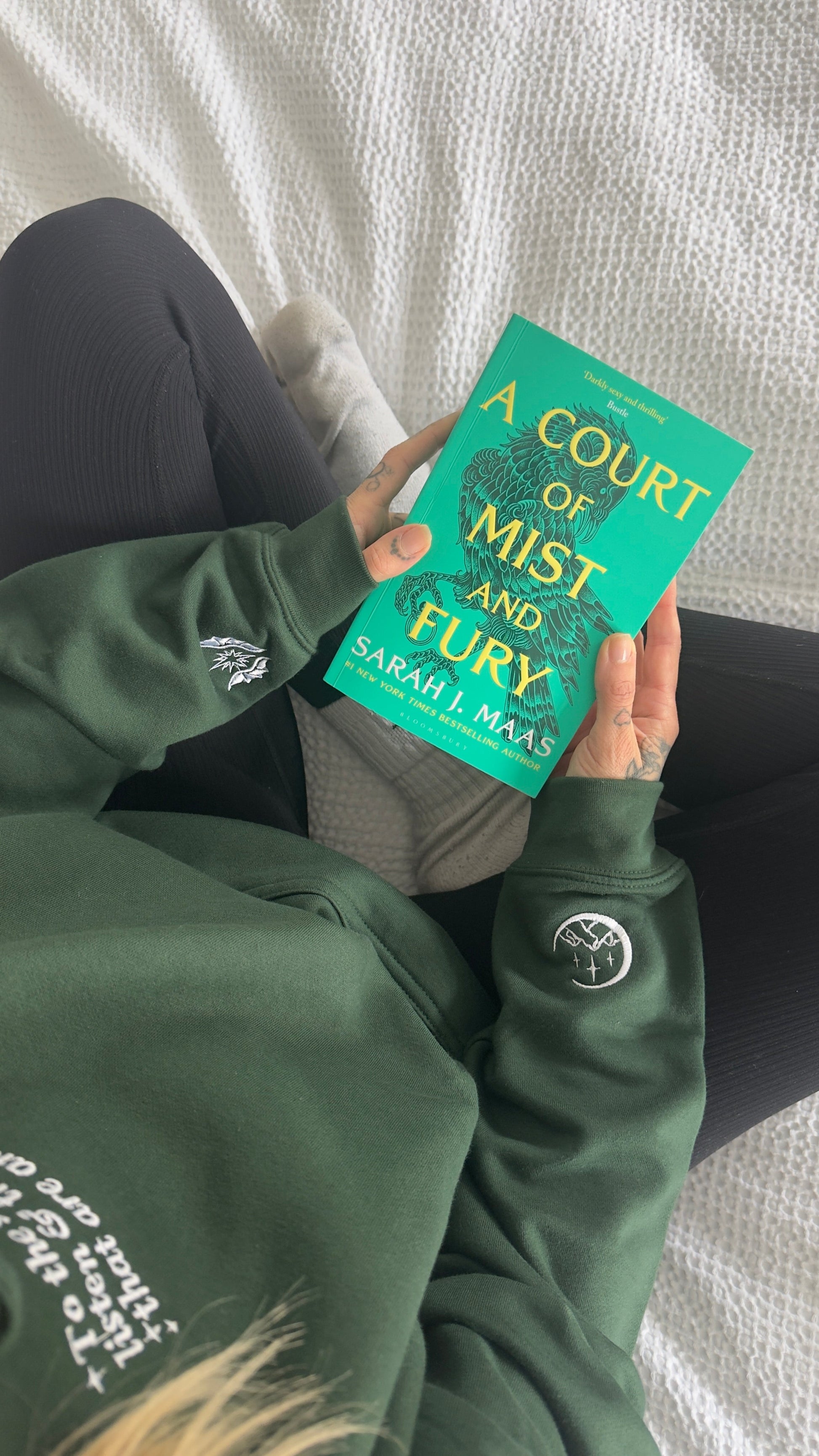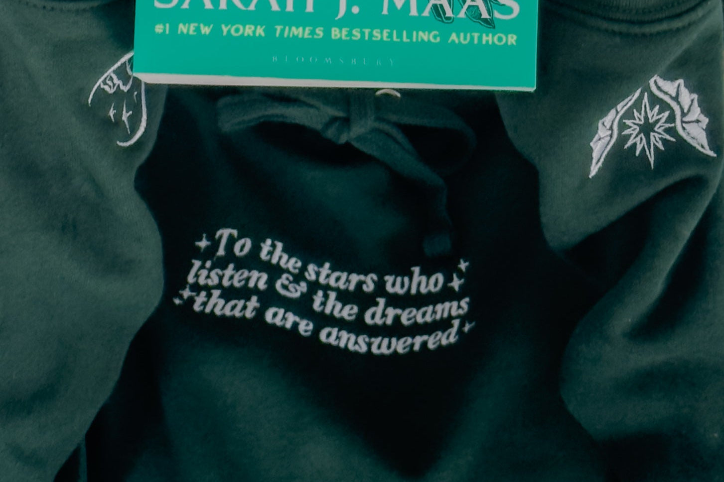 ✨ Not just words but a reminder of hope, freedom, and dreams that are answered. This embroidered hoodie is for the readers who carry a piece of Velaris with them wherever they go. With “To the stars who listen & the dreams that are answered” stitched proudly across the chest and Night Court inspired emblems on the sleeves, it’s pure Feyre & Rhysand energy - bold, magical, and unforgettable.
