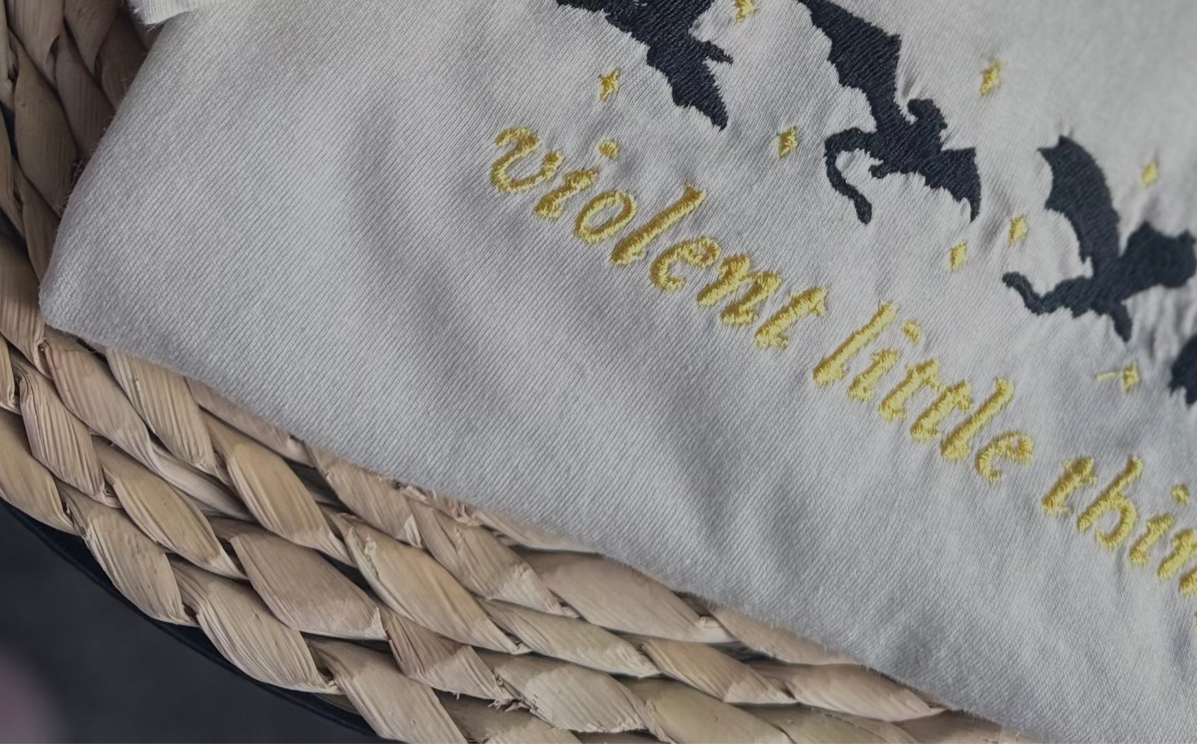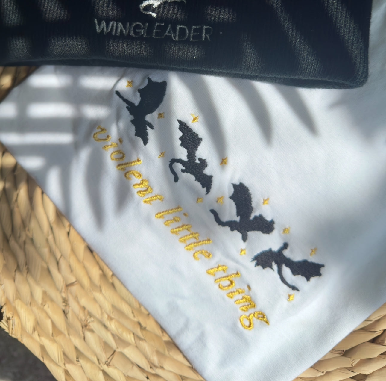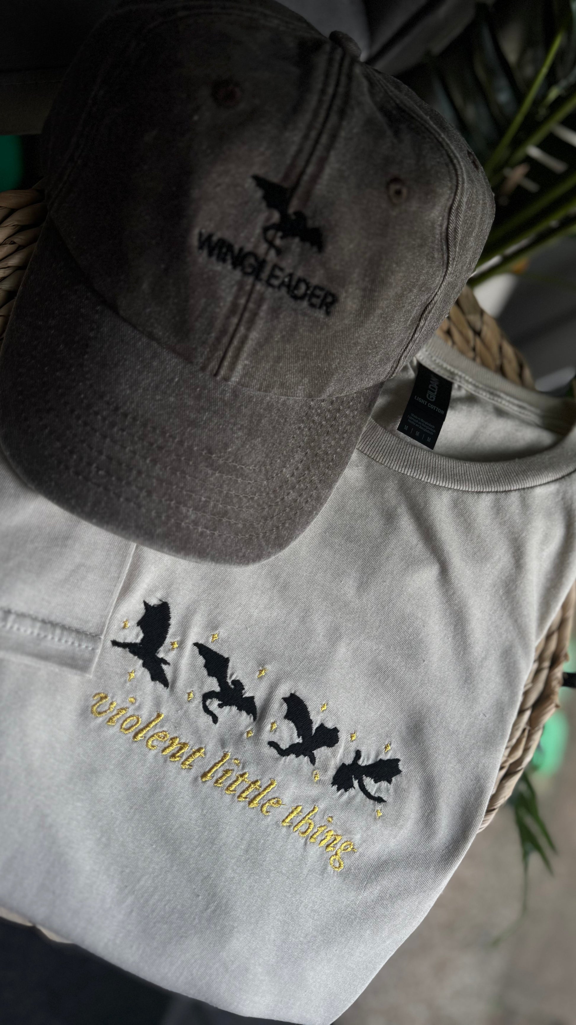 For the readers who are soft on the outside and feral on the inside – our Violent Little Thing embroidered tee is a fierce tribute to Violet Sorrengail and her squad of rule-breakers. Featuring stitched dragons, tiny stars, and golden lettering, it’s bookish perfection with an edge.