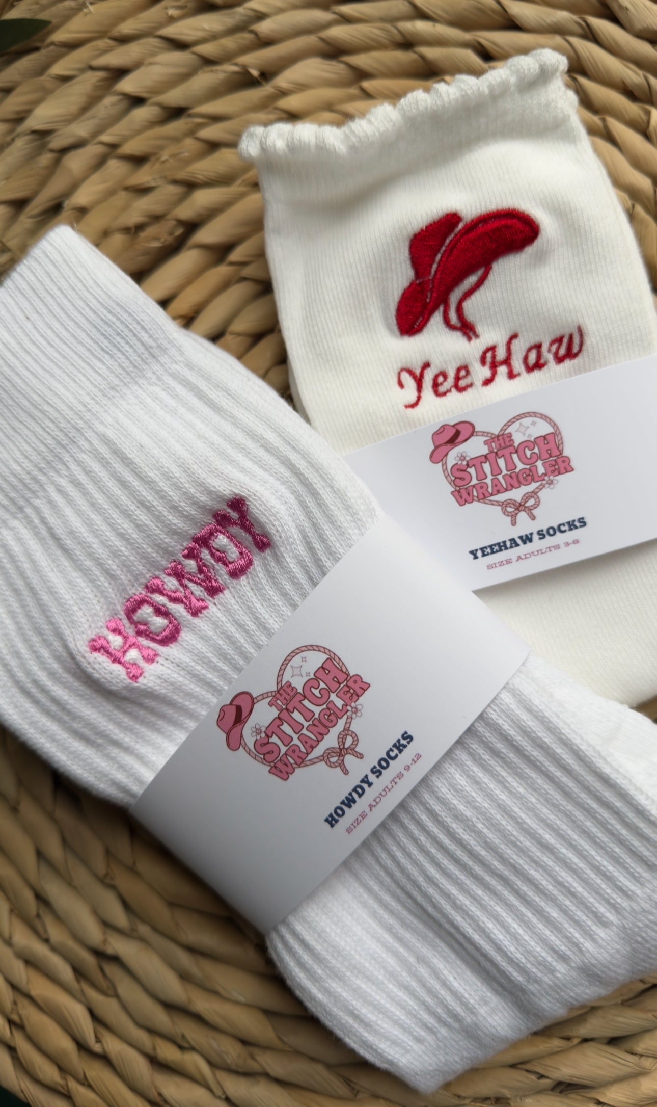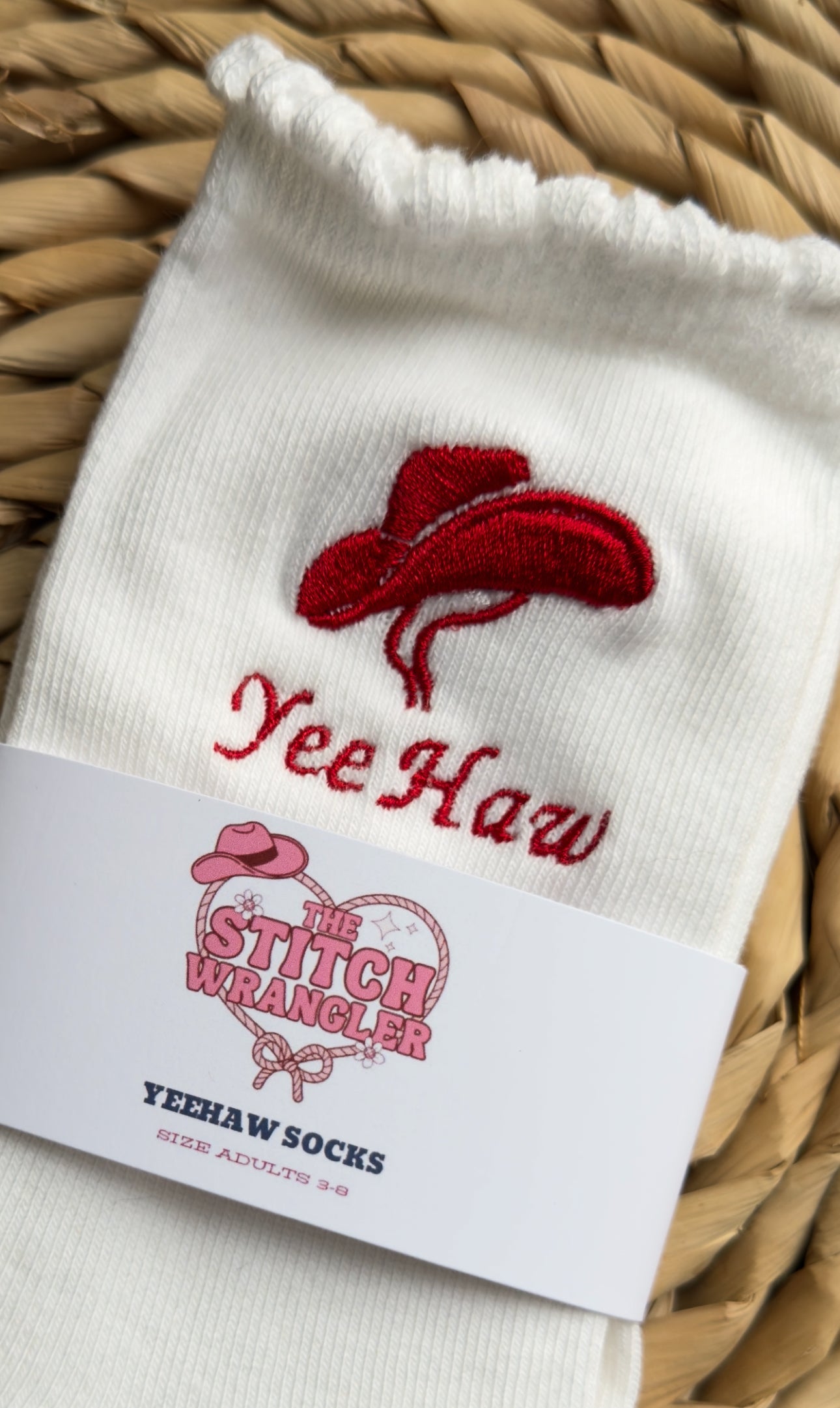 Kick up some dust and show off your sass with our embroidered Yeehaw Socks – featuring a lil’ cowboy hat and a whole lotta attitude 🤠